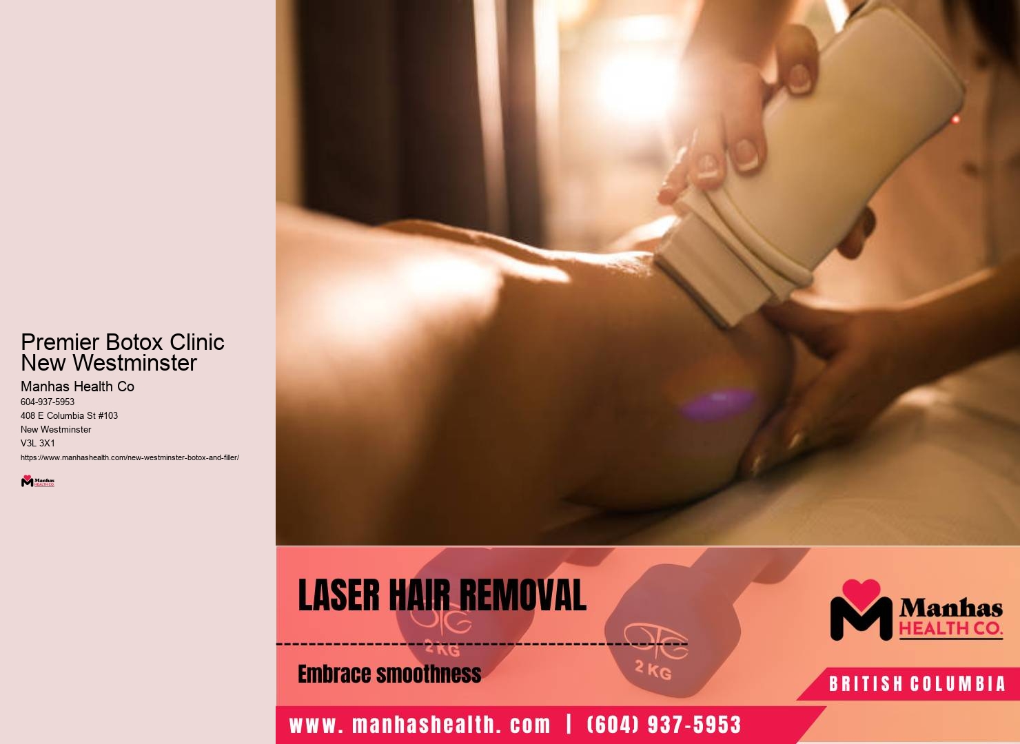 As for the results, you'll start to see the magic within a few days, but the full effect often takes up to two weeks to fully materialize. Learn more about Manhas Health Co here. At Manhas Health Co., your well-being is our top priority. You're a unique individual with specific needs and goals. To ensure the best possible results from your Botox treatment, it's crucial to follow specific post-treatment care instructions. When you step into their clinic in New Westminster, you're not just another client. Beauty enhancements Learn more about Premier Botox Clinic New Westminster here